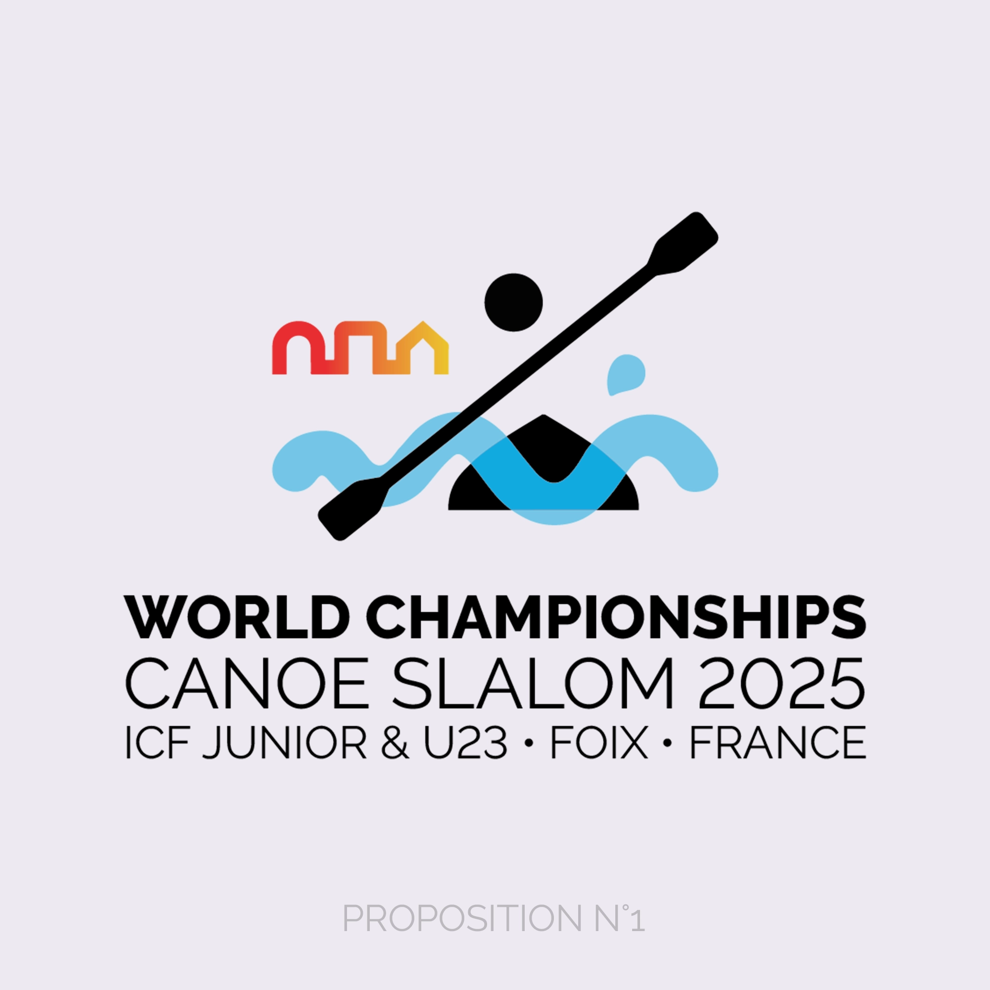 Conception de l’identité visuelle complète pour le Championnat du Monde de Canoë-Kayak Slalom Junior & U23 Foix 2025, un événement international rassemblant les jeunes athlètes des quatre coins du monde.